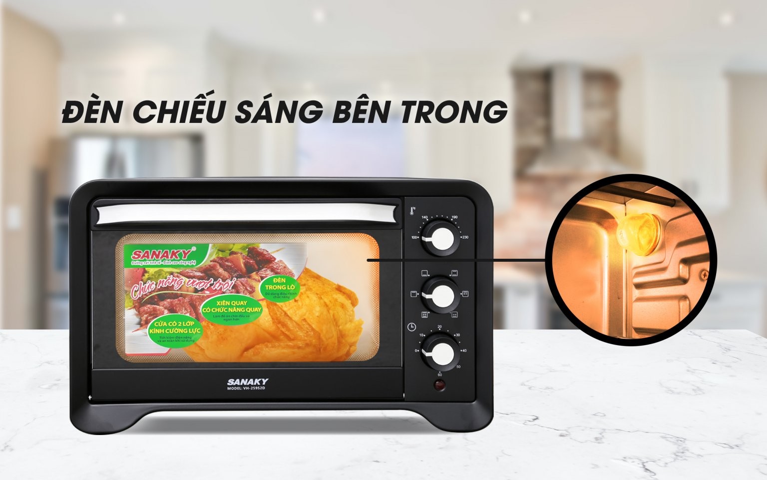 Trong lò có đèn chiếu sáng nên khi nướng người sử dụng có thể dễ dàng quan sát được tình trạng thức ăn có trong lò.