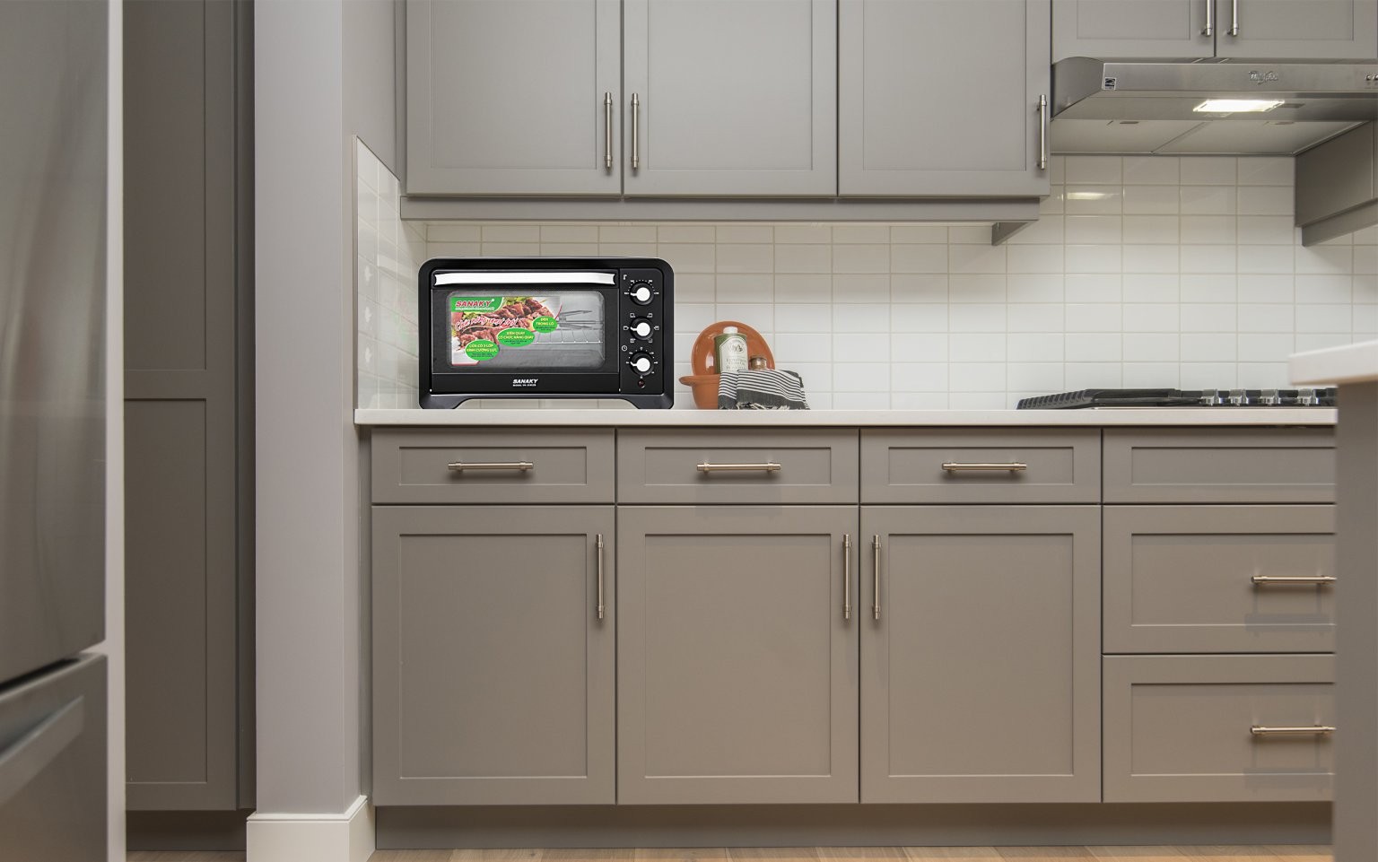 Sản phẩm với 2 màu cơ bản là đen và inox phù hợp với mọi không gian bếp. Lò nướng có trang bị 3 núm xoay, tay cầm cùng màu với viền lò làm cho lò nướng có tổng thể hài hòa.