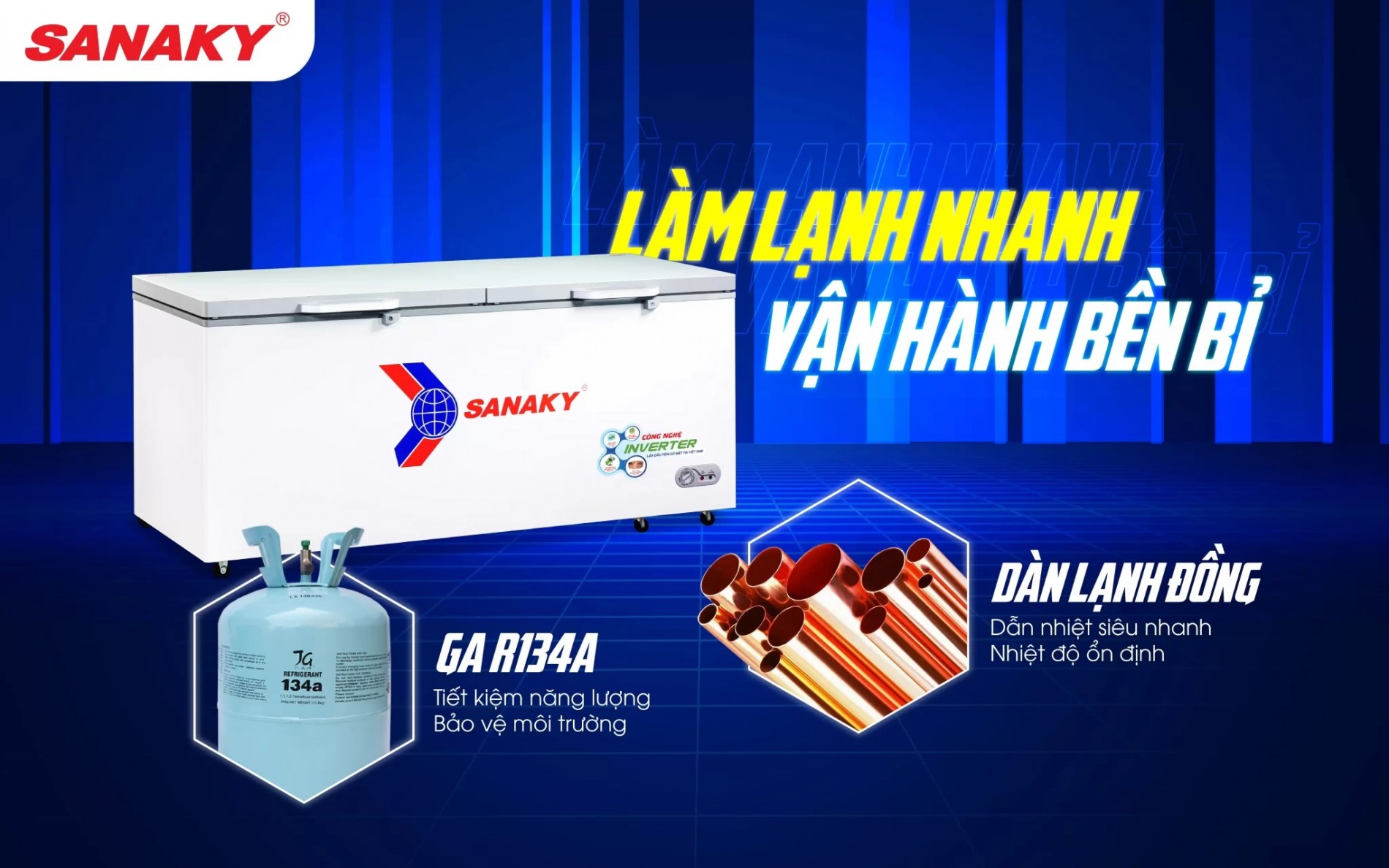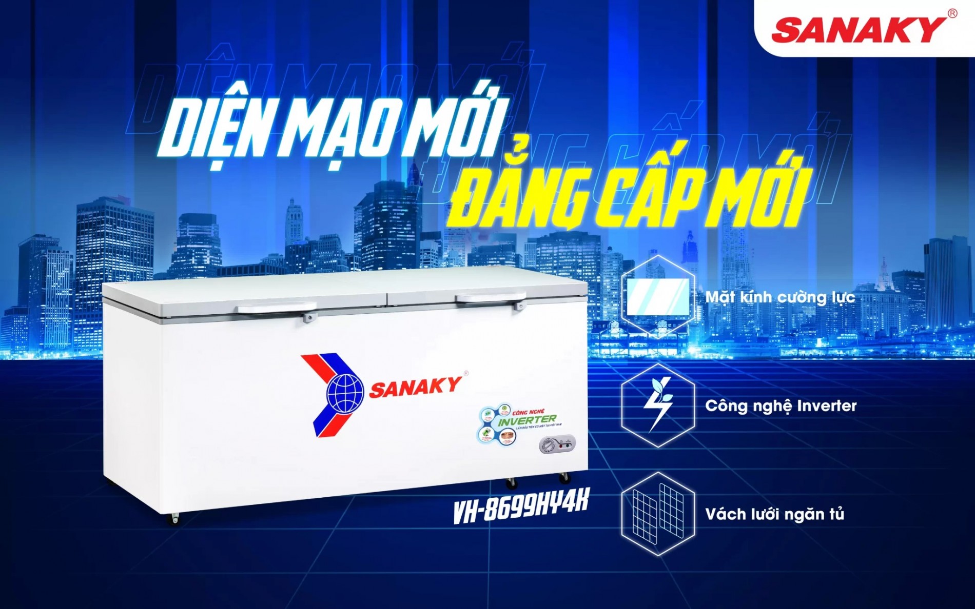 Tủ Đông Inverter Sanaky VH-8699HY4K dàn Đồng 1 ngăn 860 lít kính cường lực