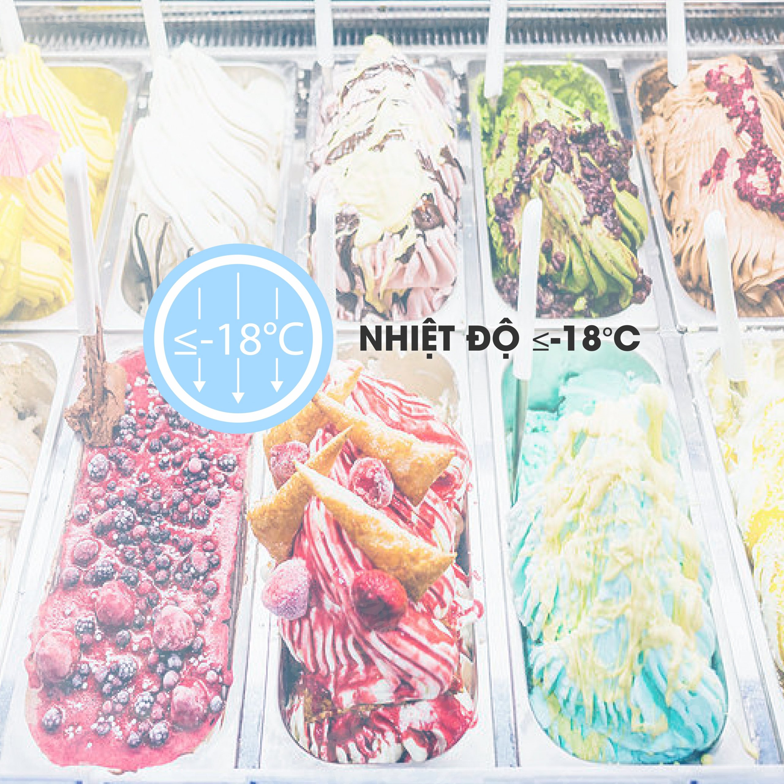 Với nhiệt độ dưới ≤-18°C thực phẩm được bảo quản trong điều kiện đông lạnh sâu, phù hợp với nhu cầu bảo quản một số thực phẩm như kem.