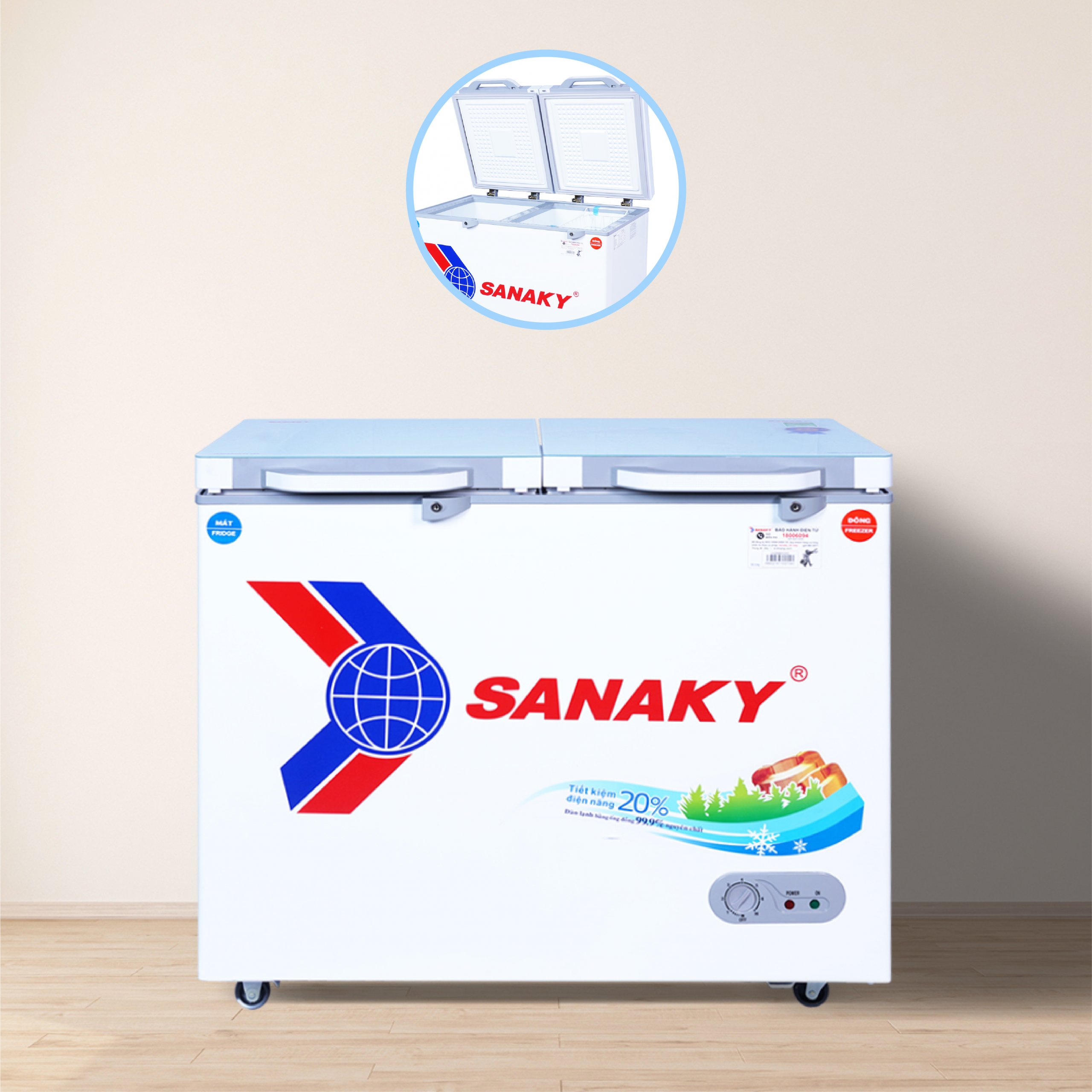 Tủ Đông Mát Sanaky VH-2899W2K Dàn Đồng 2 Ngăn 280 Lít Kính Cường Lực
