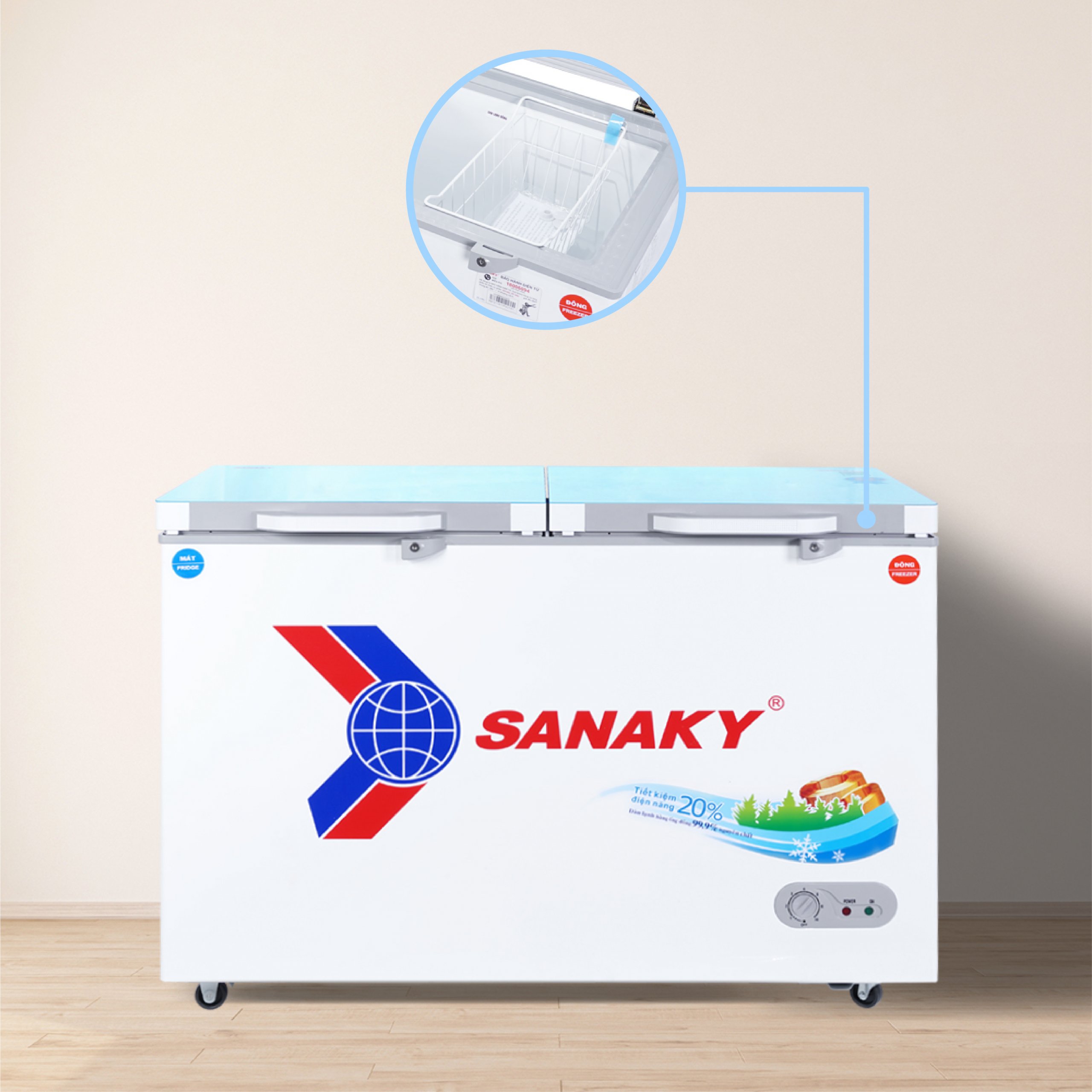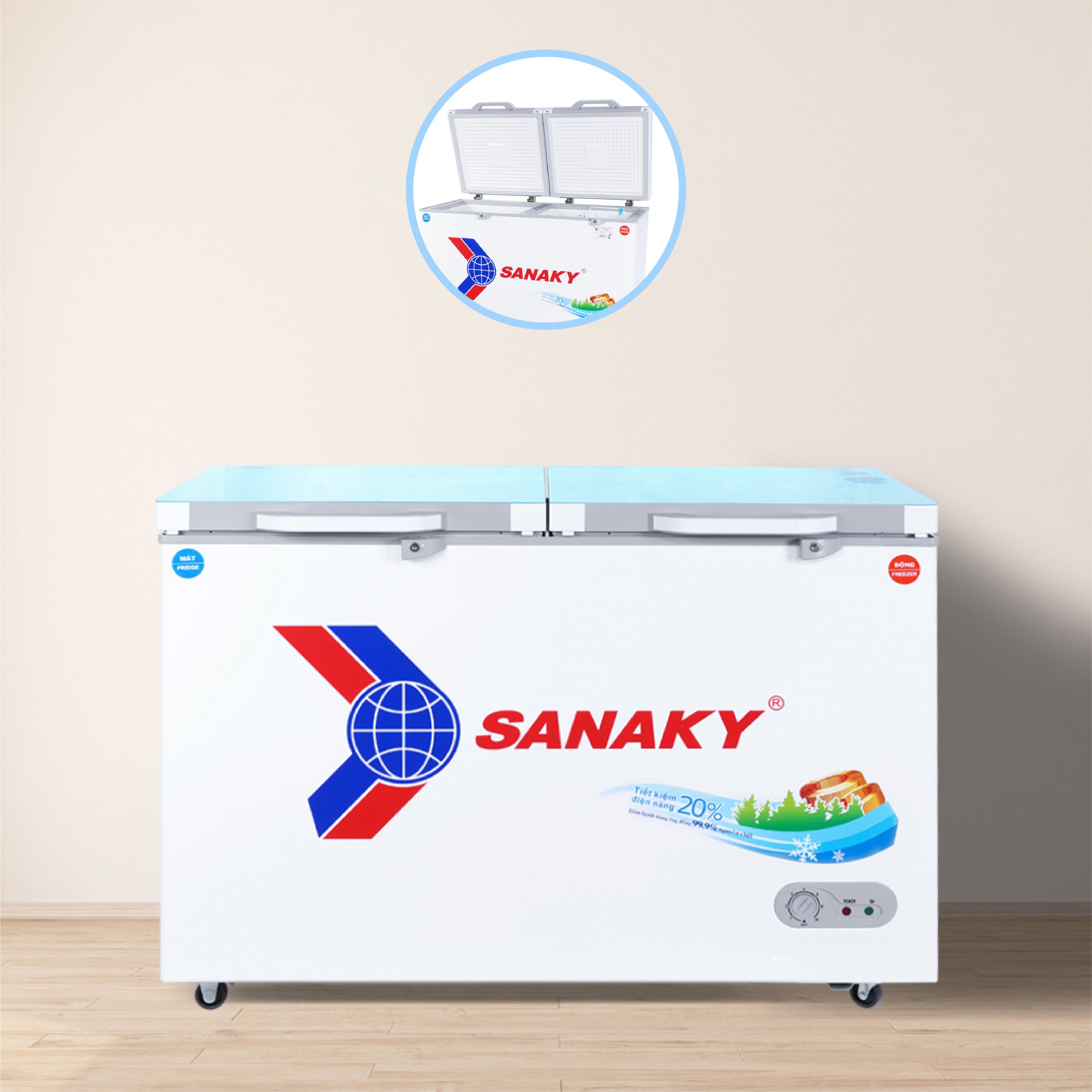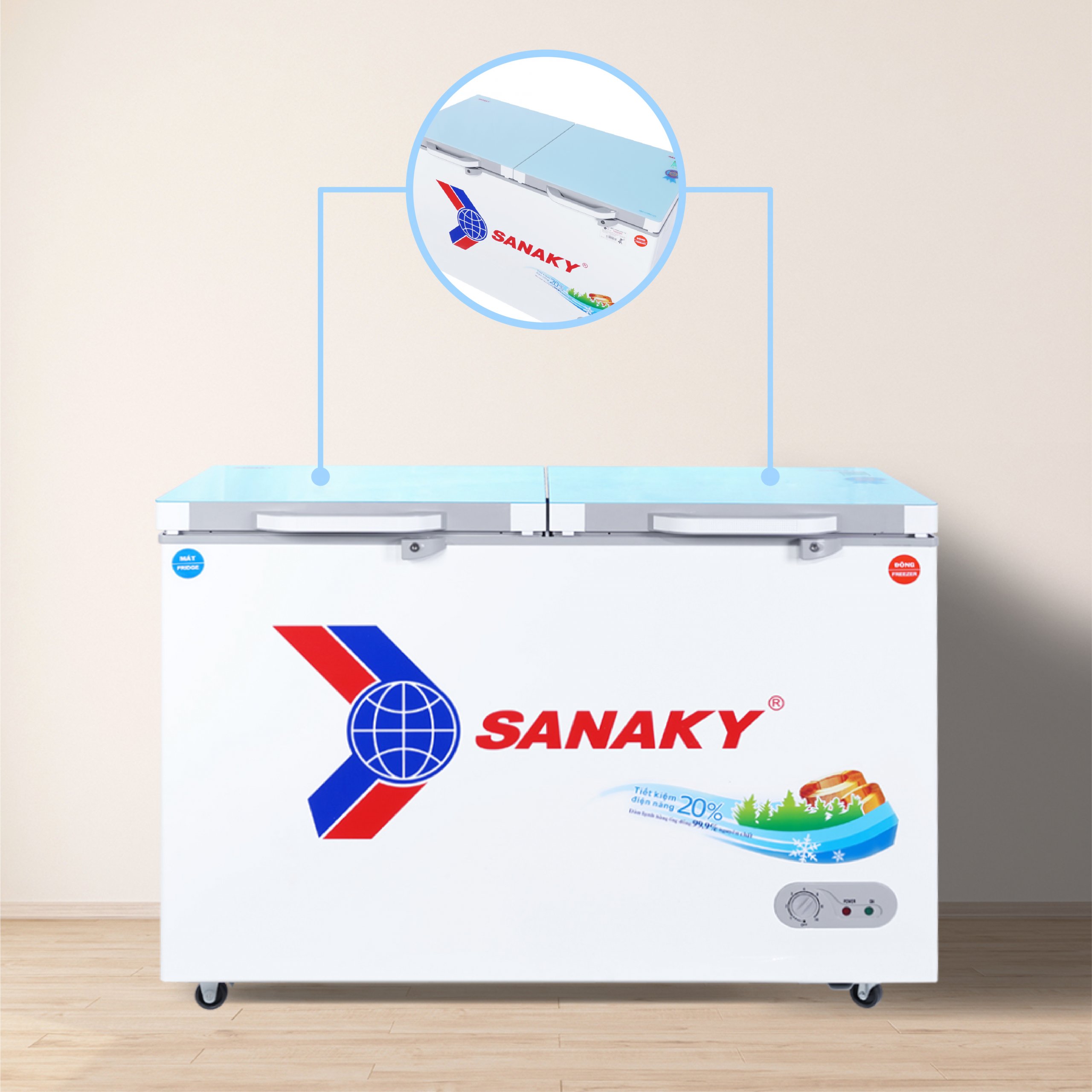 Tủ Đông Mát Sanaky VH-3699W2K Dàn Đồng 2 Ngăn 360 Lít Kính Cường Lực