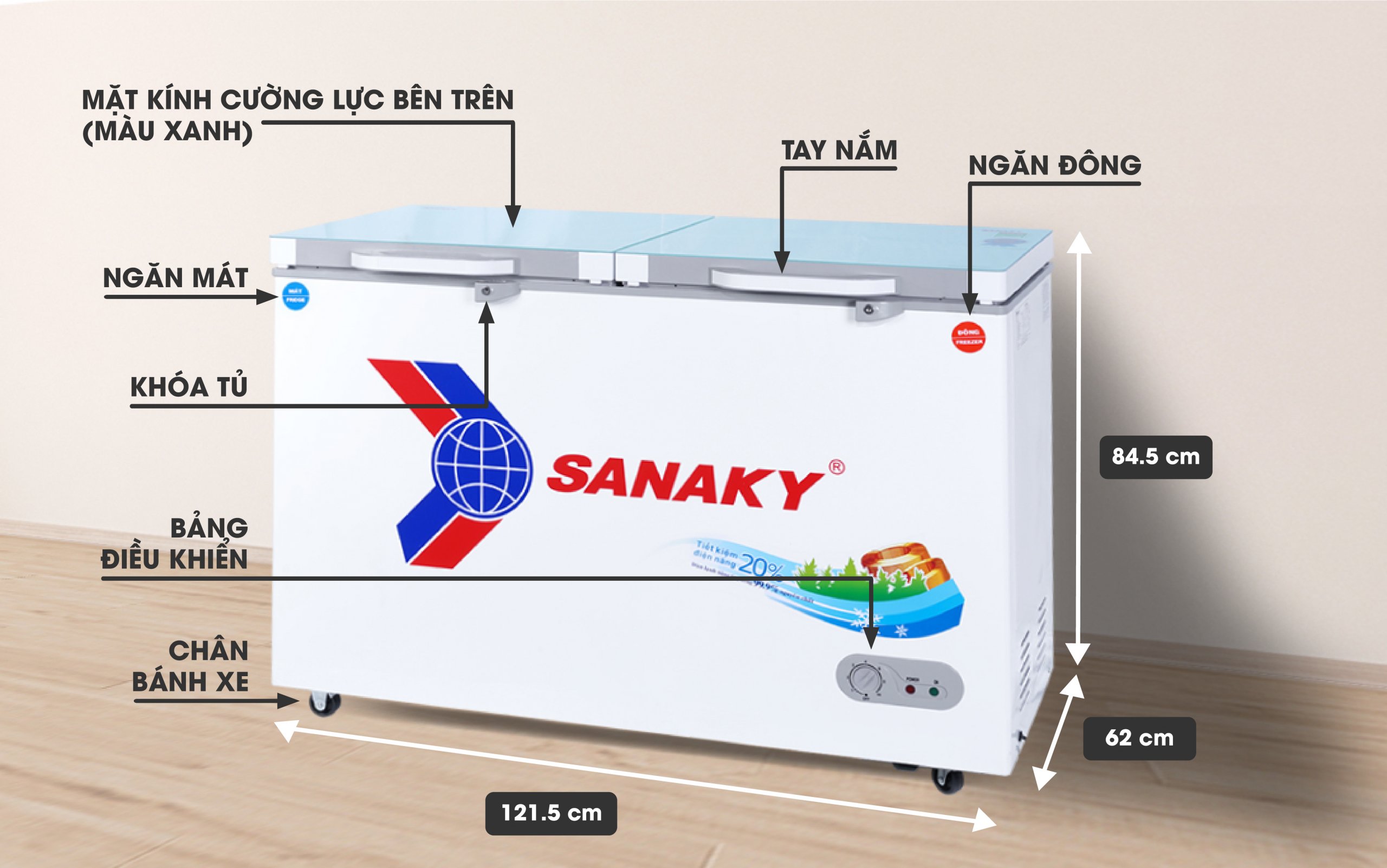 Tủ có được chia làm 2 ngăn: ngăn đông và ngăn mát riêng biệt, có dán nhãn chỉ dẫn tiện quan sát, tủ đông Sanaky cho phép bạn dễ dàng phân loại thực phẩm để bảo quản.
