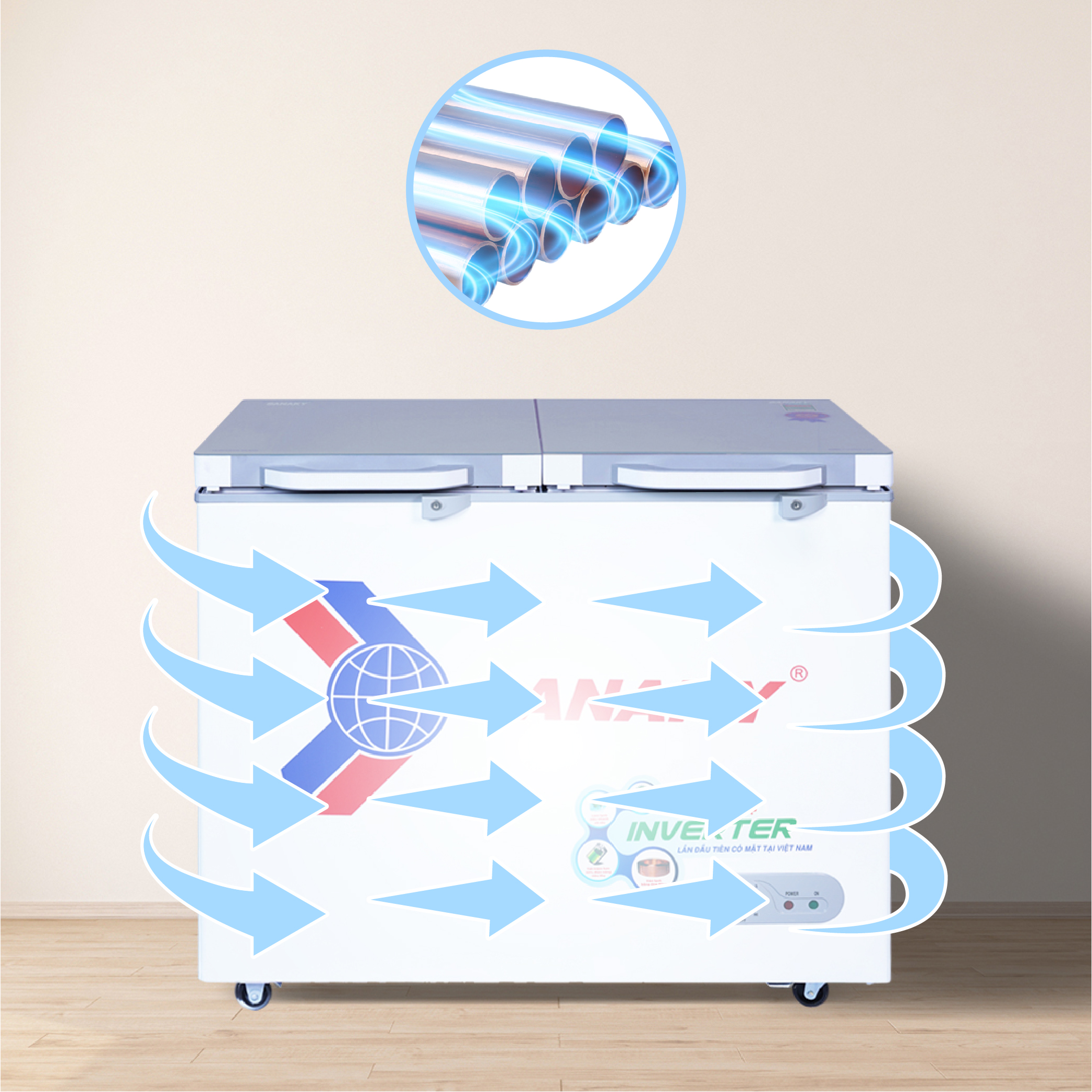 Dàn lạnh bằng đồng nguyên chất giúp cho tủ đông dẫn nhiệt nhanh hơn, vận hành êm ái và tiết kiệm điện.