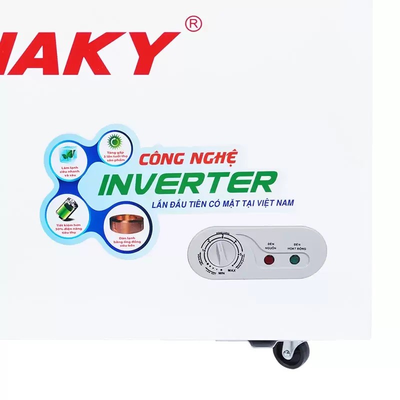 – Công nghệ inverter cũng được tích hợp cho chiếc tủ đông của hãng Sanaky này giúp tiết kiệm điện năng tiêu thụ của tủ lên tới 40% so với các dòng tủ thông thường.